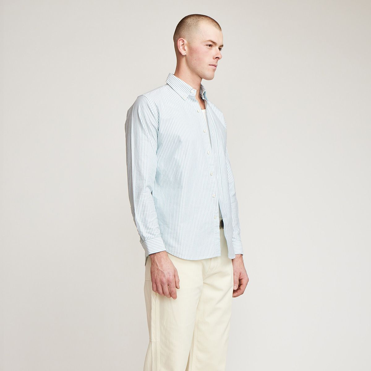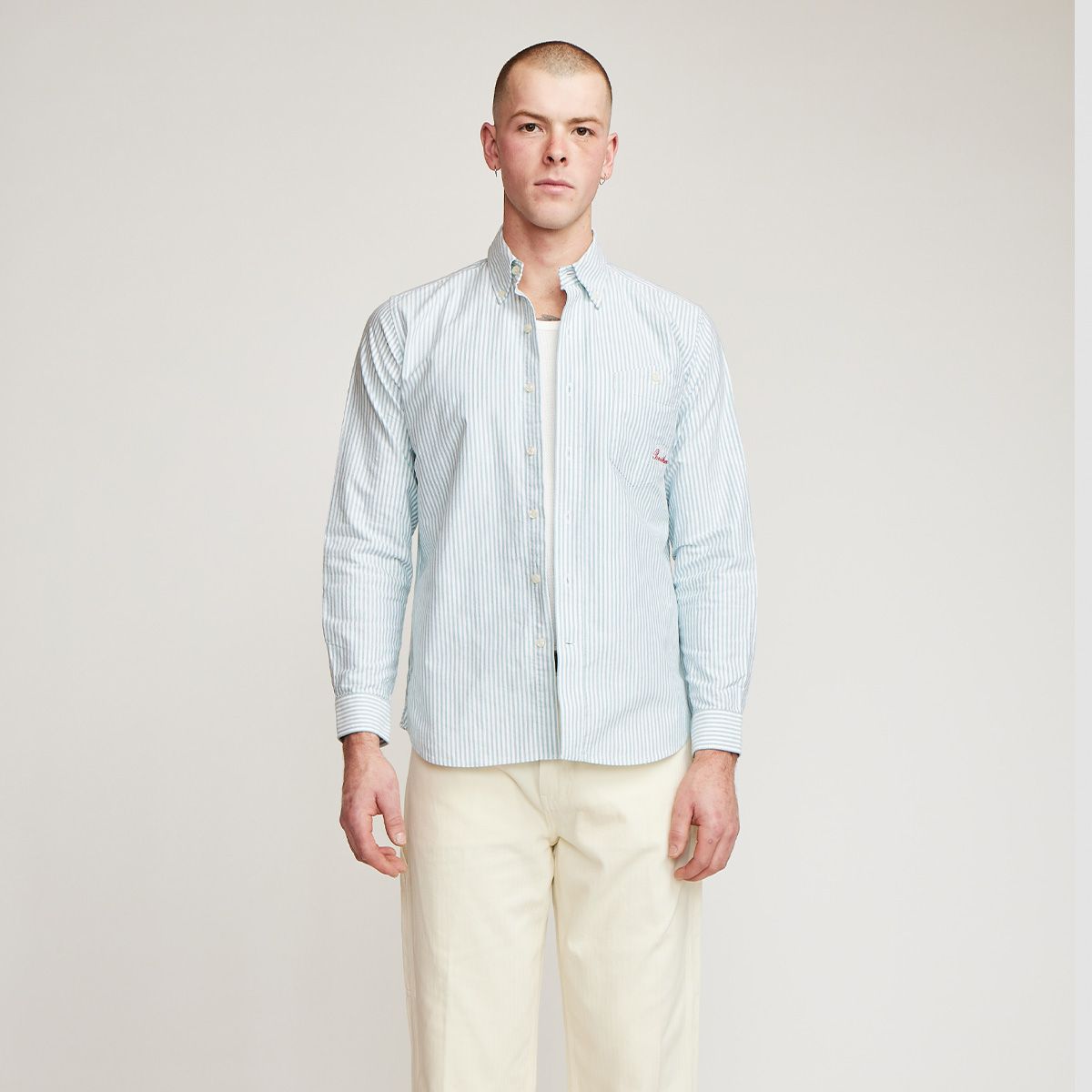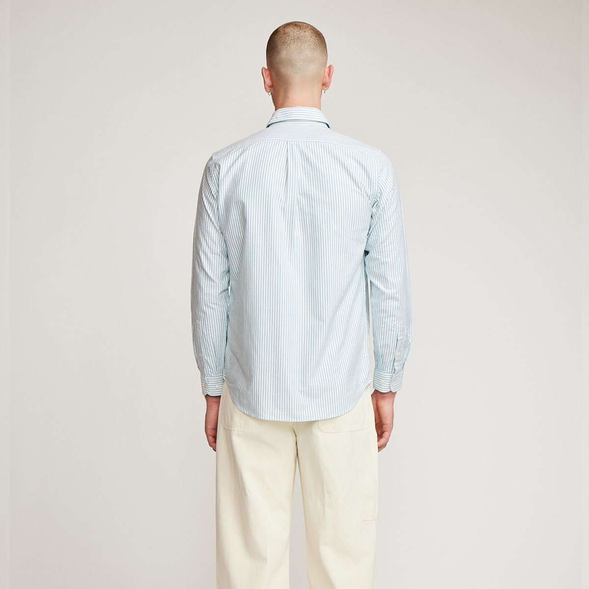 Long sleeve, button down collar, front placket, patch pocket, single cuff